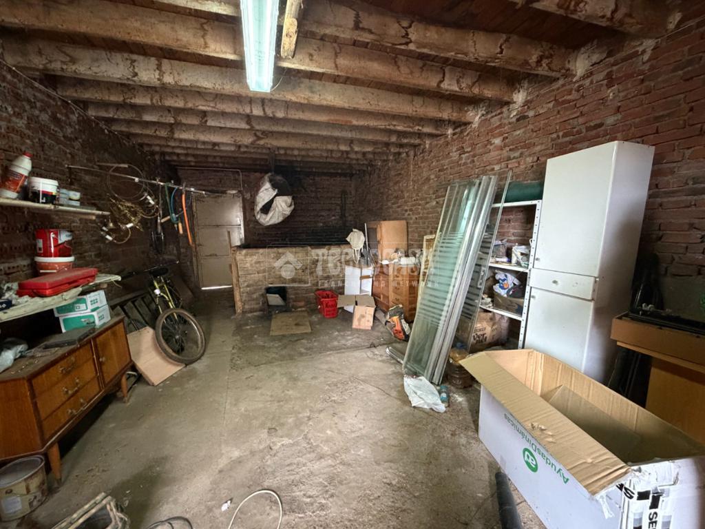 En el la parte exterior delantera encontramos un almacén con buhardilla para dar servicio y un garaje cerrado con capacidad para hasta 2 coches. En la parte exterior trasera y lateral izquierda tenemos un amplio jardín inmenso para prácticamente dar el uso que queramos. Además en esa parte trasera contamos con trasteros y el cuarto en el que se encuentra el deposito de gasoil.