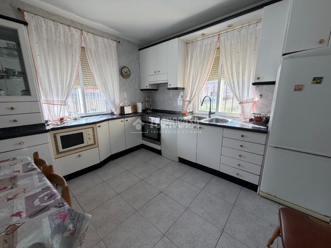 Inmueble cuenta en planta baja con 3 habitaciones dobles, un baño interior de servicio, dos cocinas equipada y salón comedor con doble orientación, en la planta de arriba encontramos 5 dormitorios de gran tamaño y una pequeña despensa.